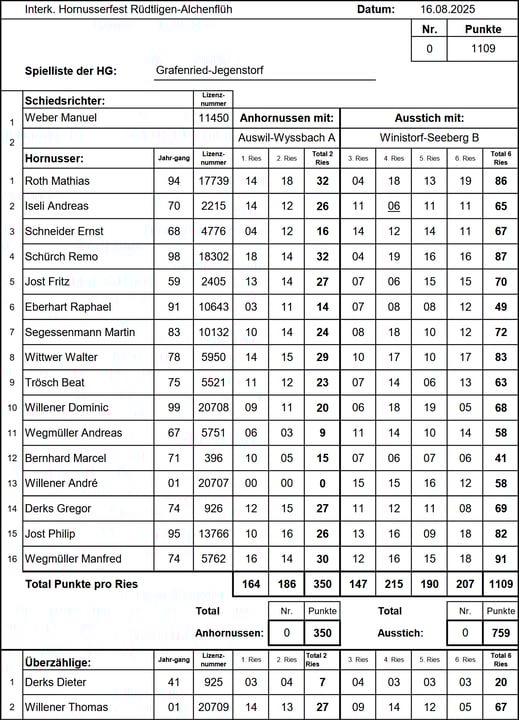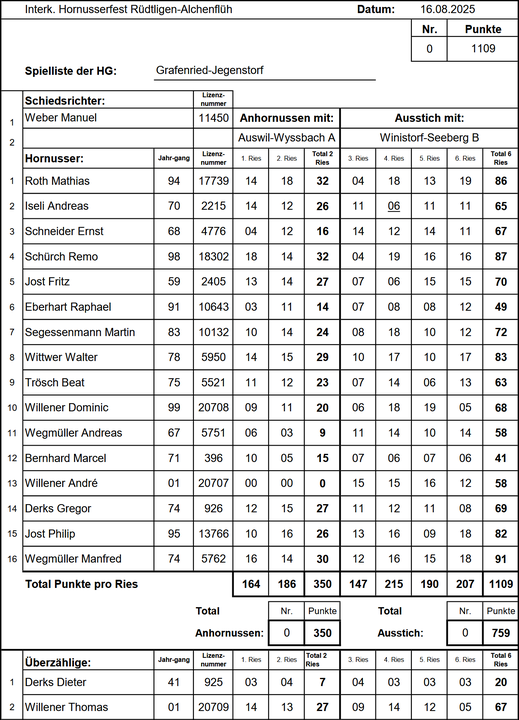 Zwischenstand: 0/250 HGWW zu 0/347 HGGJ