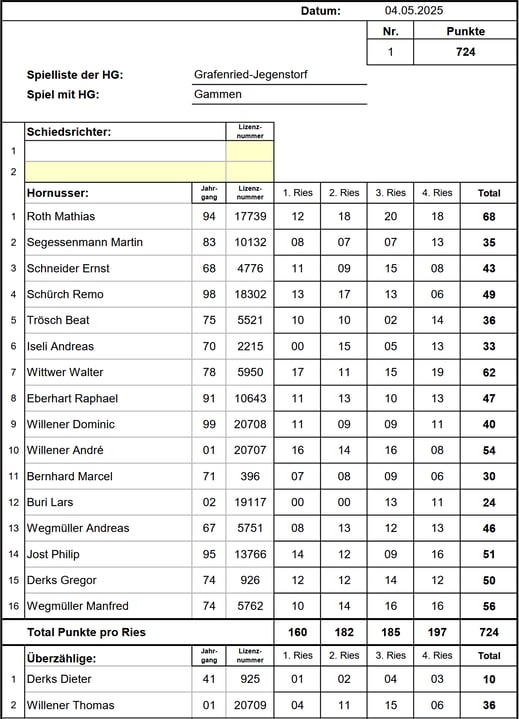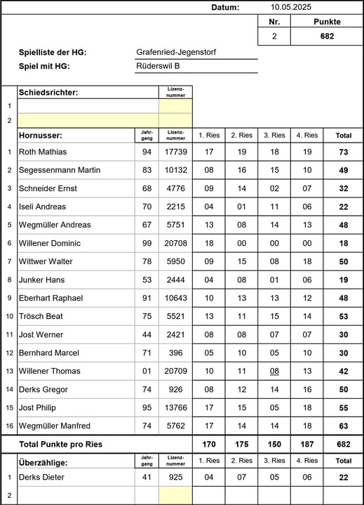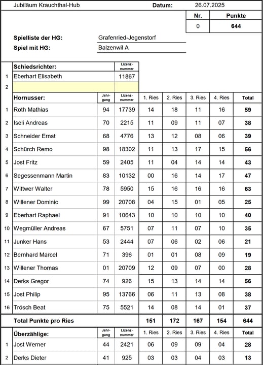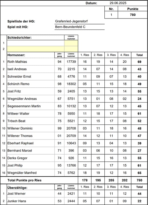 Im zweiten Umgang legten wir noch einen Zahn zu! Die Schlagleistung konnten wir verbessern, während die Gäste drei weitere Nummero notieren mussten. Mit dem Sicherheitspolster von 4 Nummero waren wir Siegessicher und konnten dieses Mal, wenn auch mit etwas Glück, unser Ries erfolgreich verteidigen. Damit war das Spiel entschieden und wir konnten zwei Rangpunkten feiern.