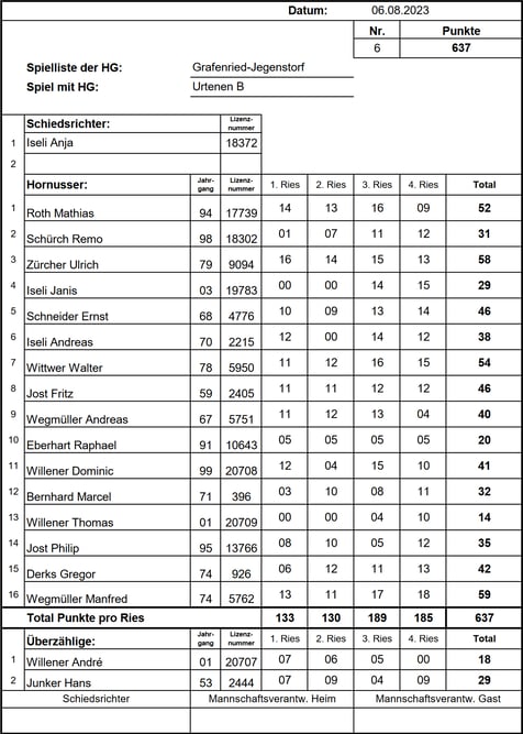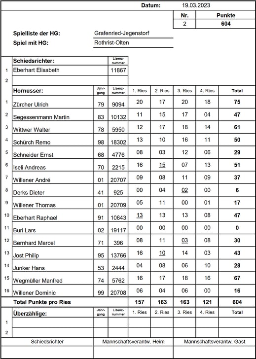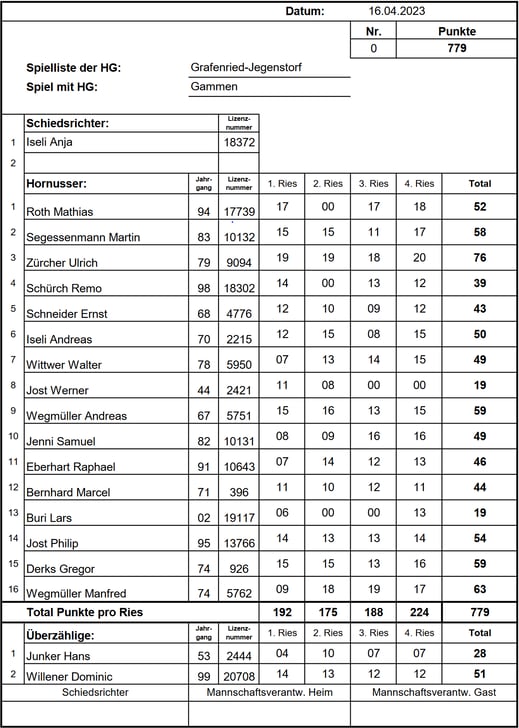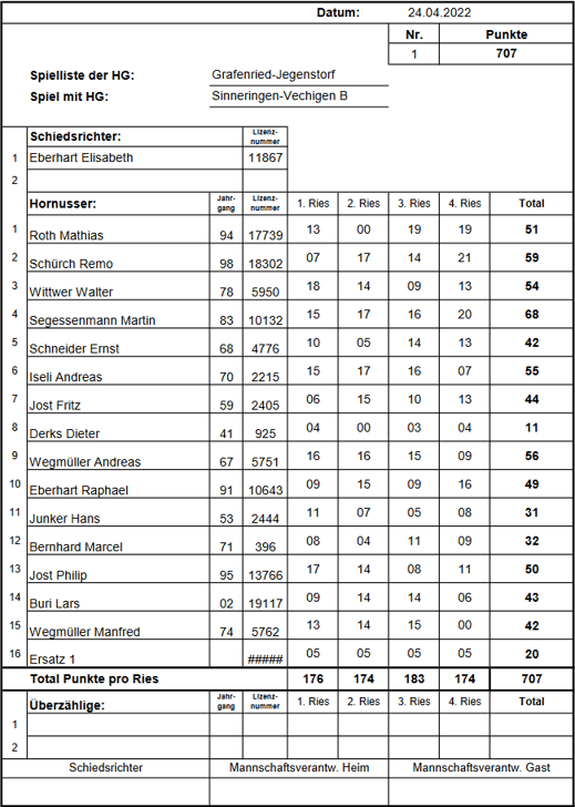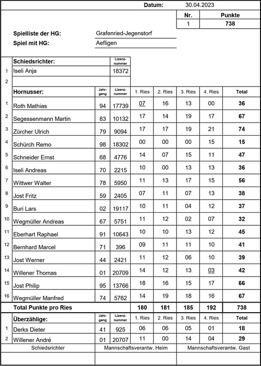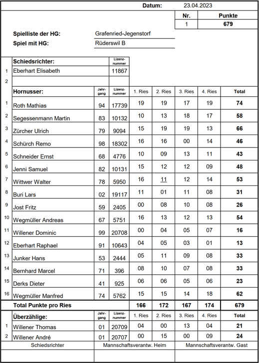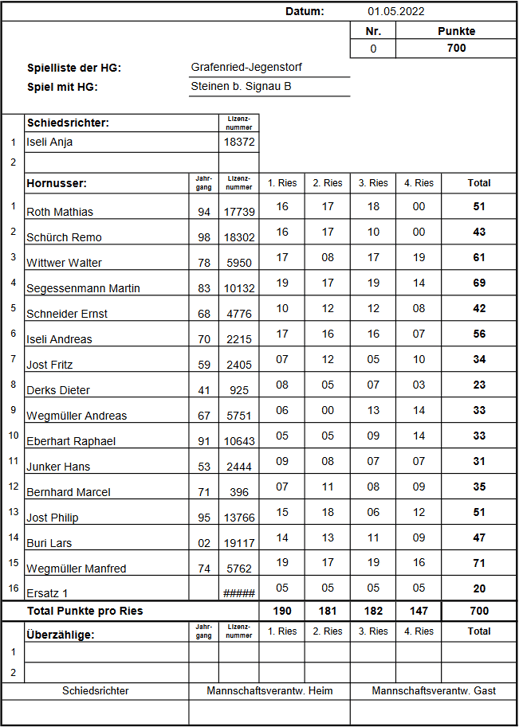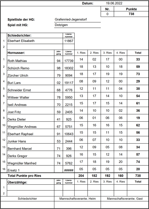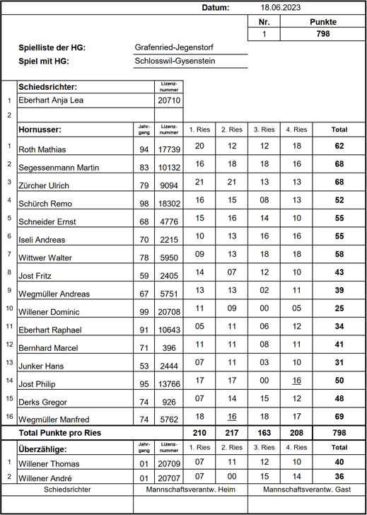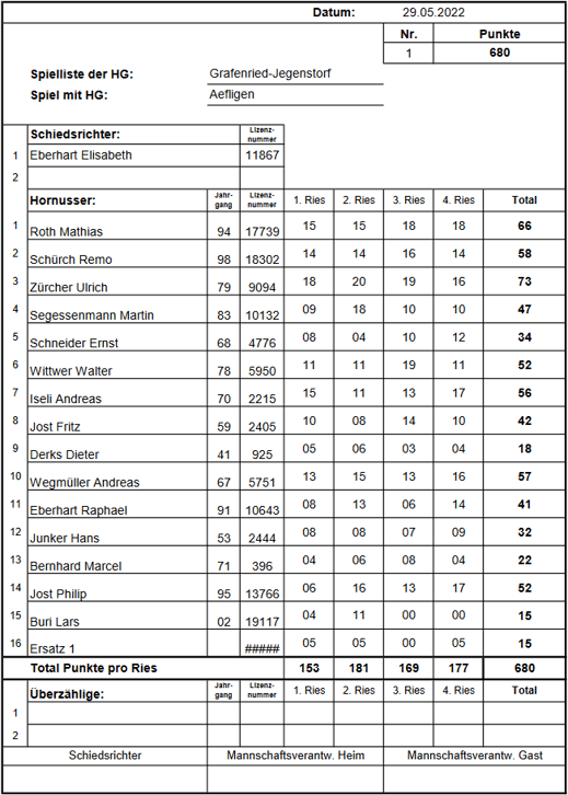 punktemäßig. Sie behielten die Kontrolle über ihr Ries und liessen kein weiteres Nummero zu, was uns schliesslich die Niederlage bescherte. Endstand: 1/742 HGR-B zu 1/679 HGGJ