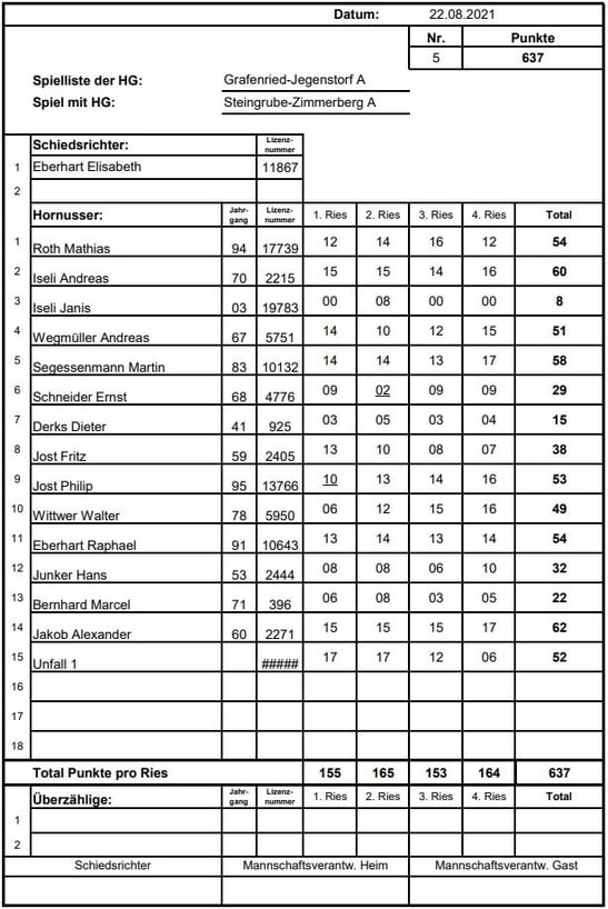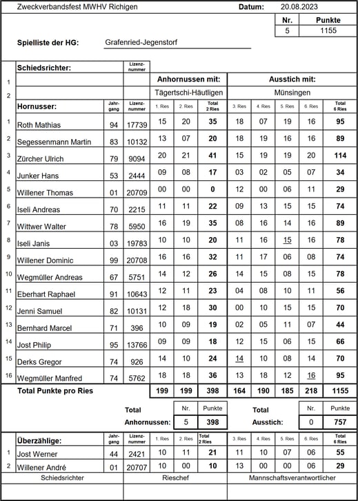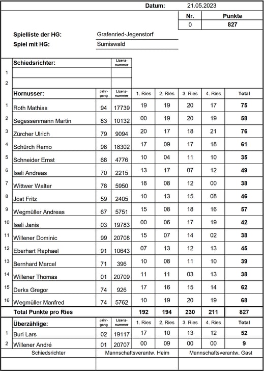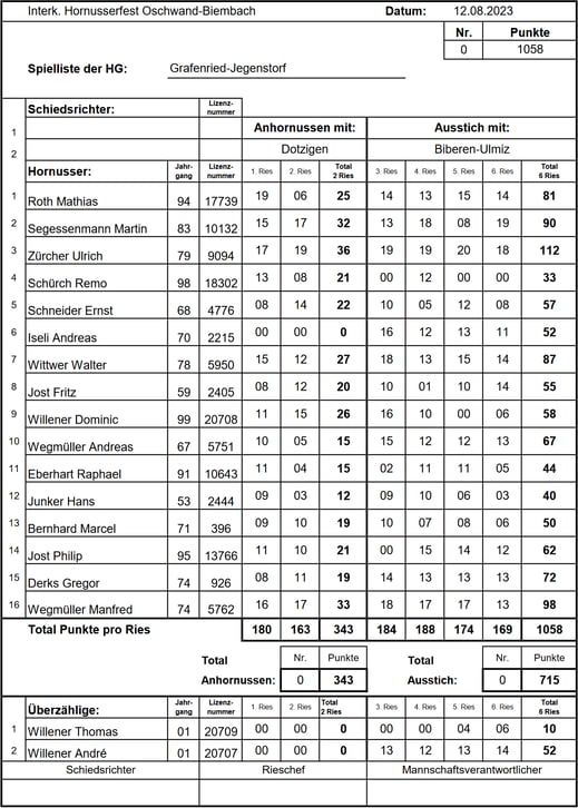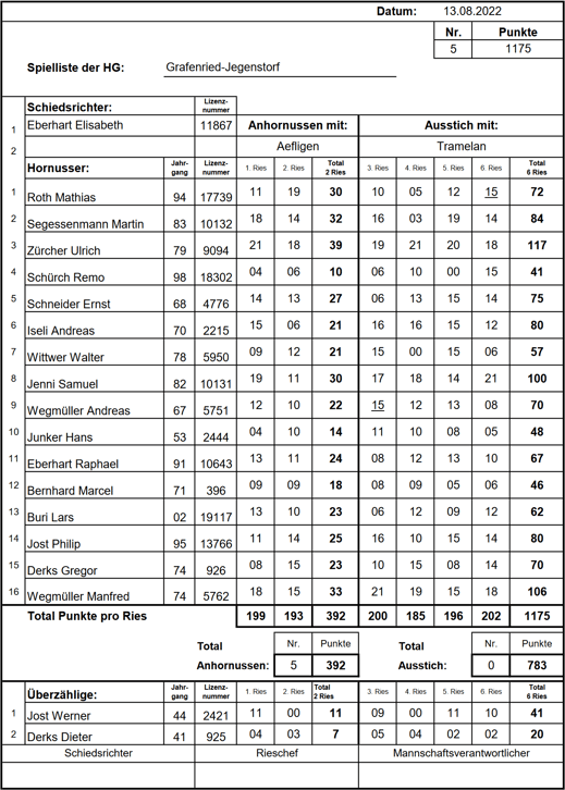 welchem Holz wir geschnitzt sind. Das Anhornussen verlief reibungslos und wir sicherten uns mit 0 Nummero und 407 Schlagpunkten souverän den ersten Zwischenrang.