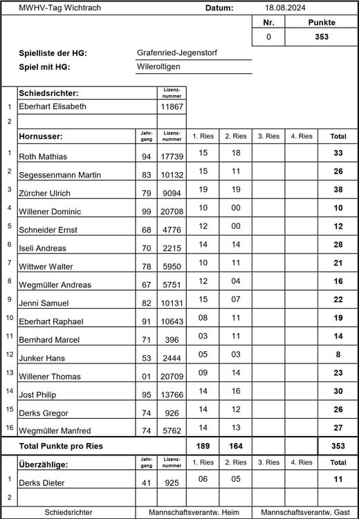 noch ein weiteres Nummero. Somit war der Sieg verschenkt. Was nach einem grossartigen Heimsieg aussah, hatte sich in eine enttäuschende Niederlage entwickelt. Endstand: 1/582 HGWW zu 2/812 HGGJ